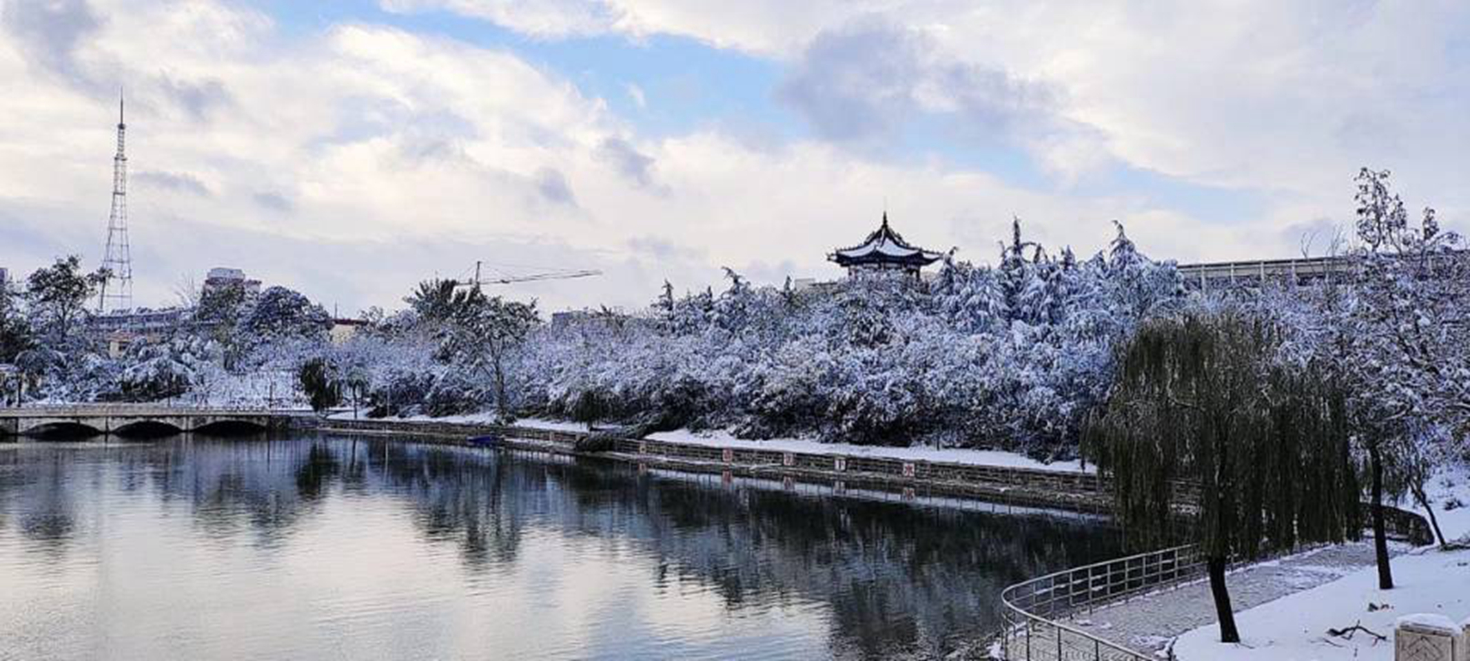 立冬之際,雪花紛紛飄落。這些冬之精靈親吻著大地,與枝頭的紅果黃葉嬉戲,為高樓大樹穿上新衣……校園里銀裝素裹,玉樹瓊枝,儼然一個童話世界。