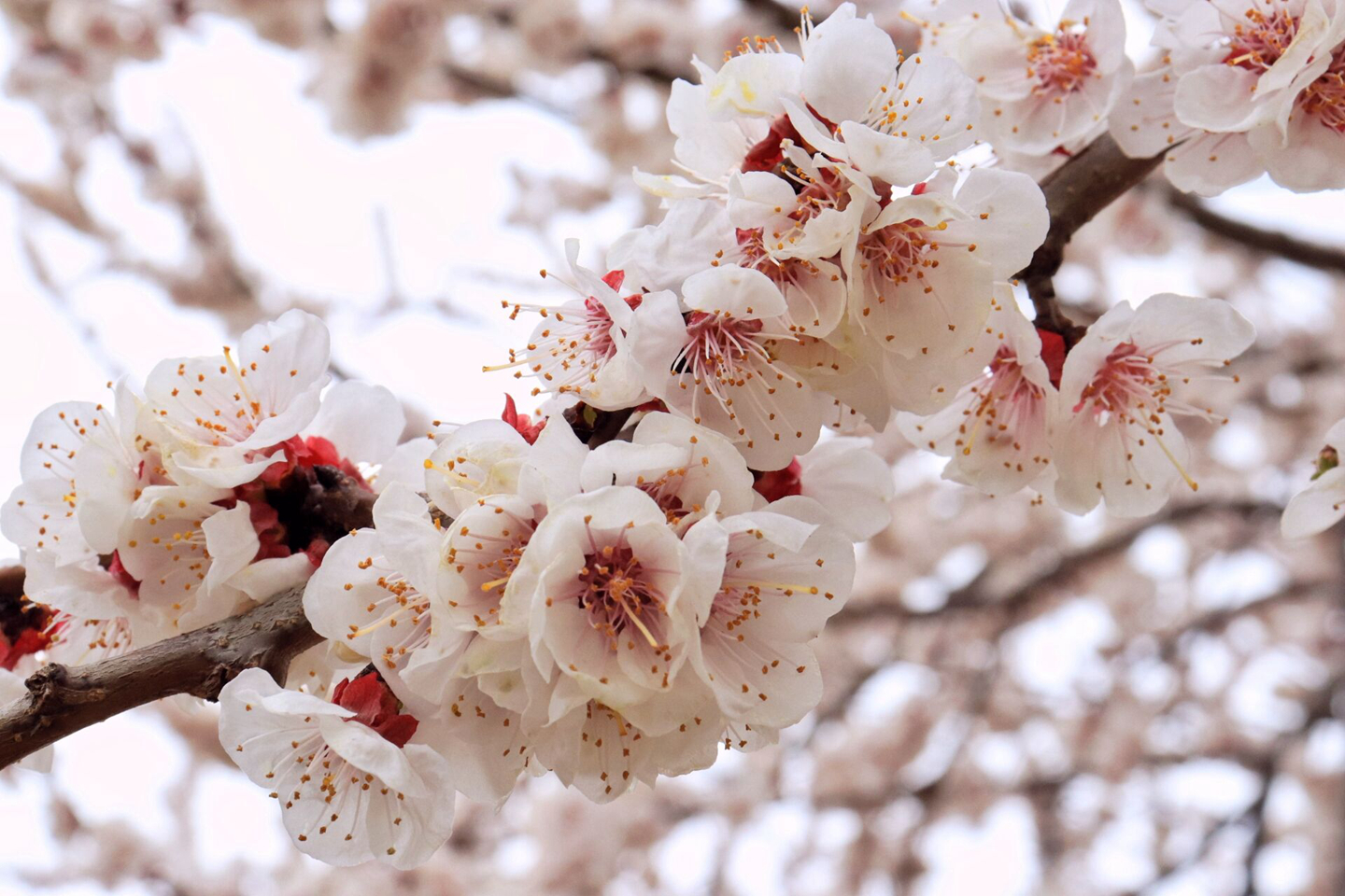 款款的陽春三月風,吹來了杏花滿枝頭,花團錦簇;吹散了小草枯榮衣,青翠欲滴。看這滿樹的花兒與嫩綠的小草相互映照,和諧而又美好,盡顯春天的勃勃生機。