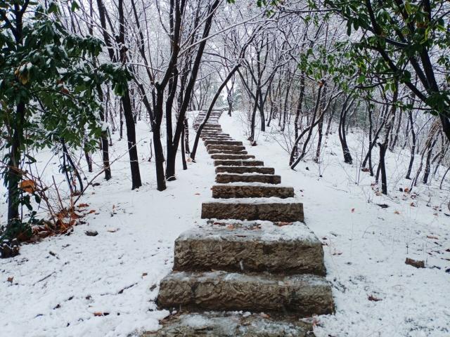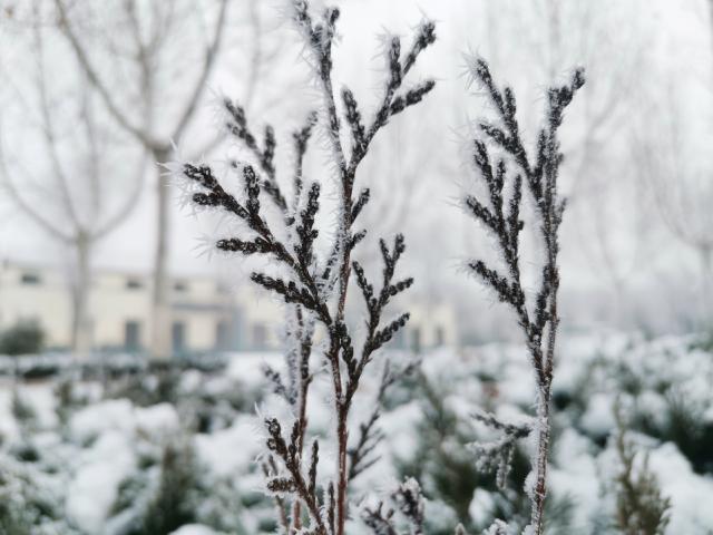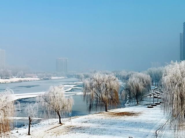 “冬宜密雪,有碎玉聲。” 新雪初霽,霜雪落滿地,意上雪中枝。樓臺、亭閣、松樹、雪花渾然一體,銀裝素裹,皓然一色。