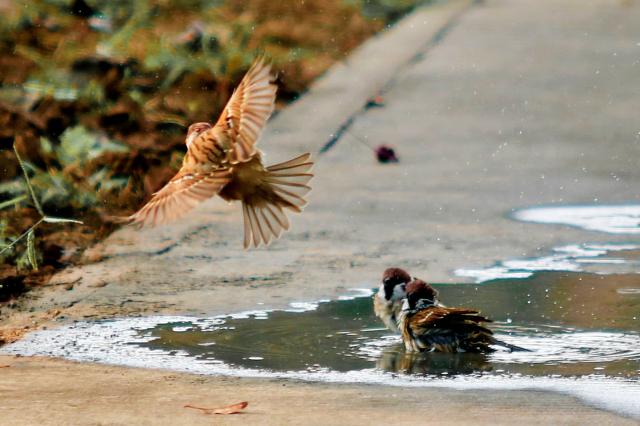 “啾啾瞅,啾啾啾"一連串鳥兒清脆宏亮的歌聲打破校園的沉靜,它們如同校園里的小精靈,為我們的校園生活增添許多色彩與樂趣,表現出我校的生機與活力。