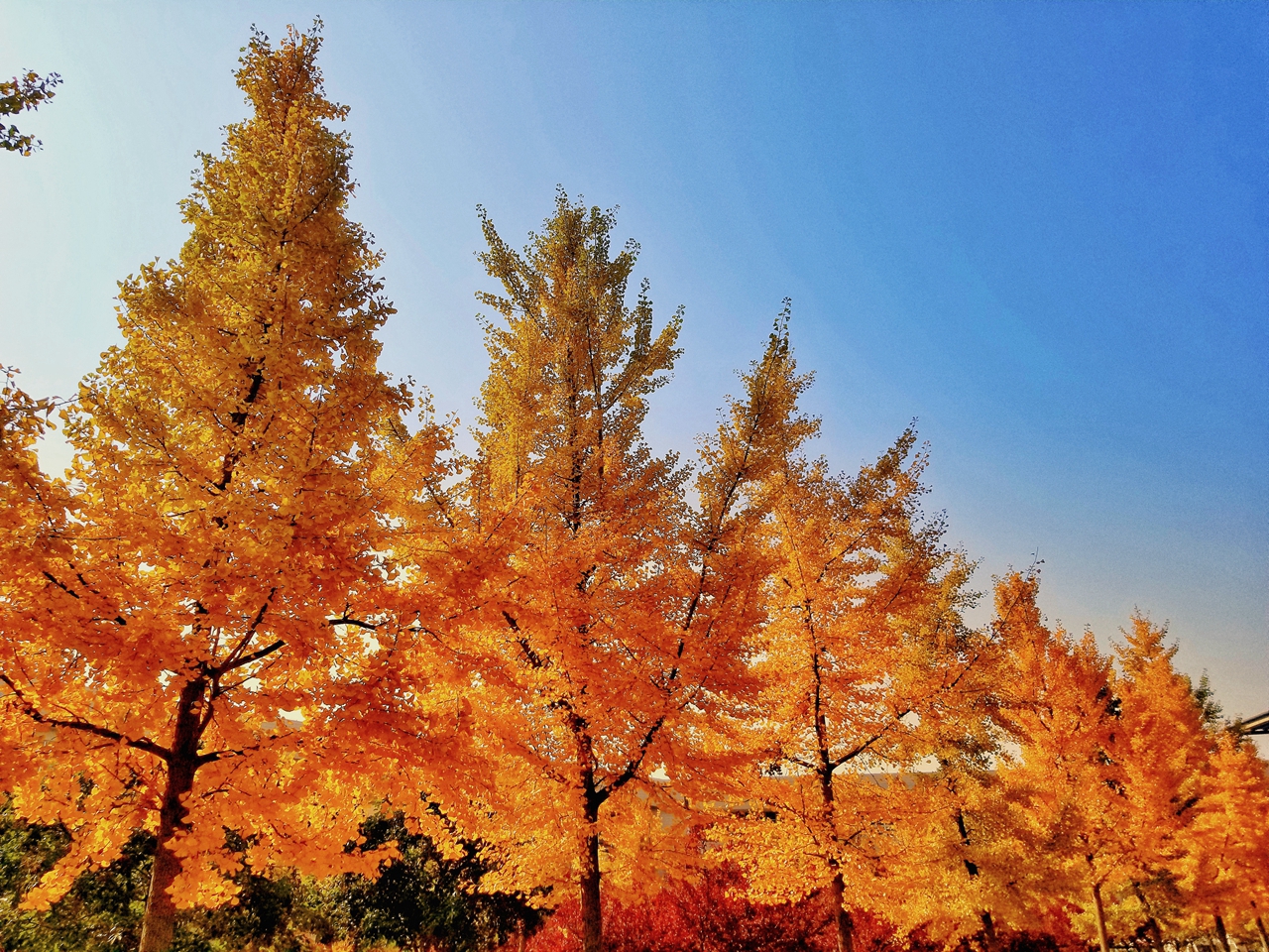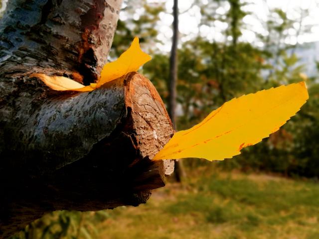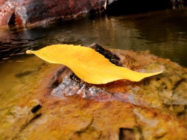 秋風吹過,層林盡染,金黃的落葉,落在地上,像鋪了一層黃地毯;落在水面,輕悠悠地,像小船,順風慢慢地蕩走。