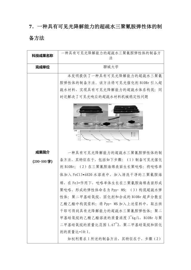 一種具有可見光降解能力的超疏水三聚氰胺彈性體的制備方法