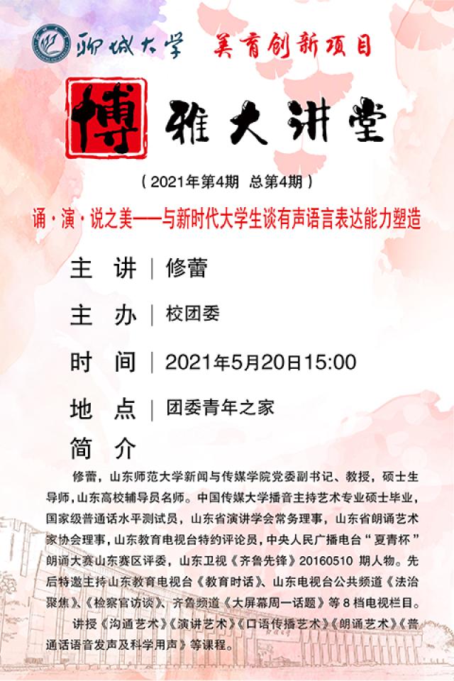 博雅大講堂2021年第4期:誦·演·說之美——與新時代大學生談有聲語言表達能力塑造