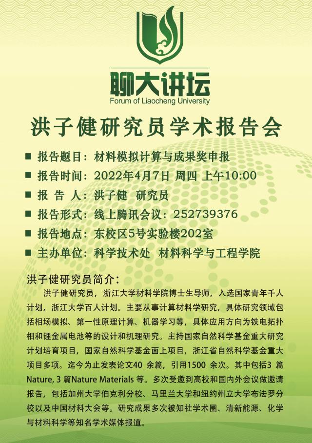 聊大講壇——洪子健研究員學(xué)術(shù)報(bào)告會