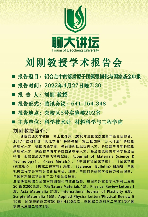 聊大講壇——劉剛教授學術報告會