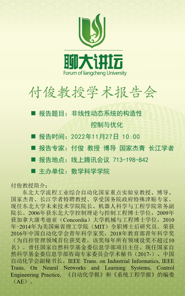 聊大講壇——付俊教授學術報告會