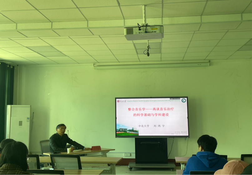 講座中,首先劉教授從六個方面對音樂的再認識進行講解:1.音樂是一種“運動”;2.音樂是一種“非藥物治療手段”;3.“整合音樂學”主要觀點;4.音樂治療學專業(yè)建設;5.音樂治療學學科建設;6.音樂治療學學術交流與學術組織建設。接著,劉教授指出了音樂學中的科學問題,以物理學的角度,系統(tǒng)科學的講解了樂音聲學、音樂心理聲學、醫(yī)學音樂治療設備研制等一系列學術問題。隨后,他又介紹了從古希臘時期就有人提出用音樂療愈傷痛,我國古代《黃帝內經》中記錄了“五音療疾”,表明了音樂治療的科學性以及可行和發(fā)展性。最后,他例舉出了十個與音樂治療相關的研究領域,比如民族藝術傳統(tǒng),音樂作品研究,音樂表現(xiàn)形式等等。下午交流中, 劉教授首先聽取了學院副院長王海華、第四人民醫(yī)院行為治療科主任田海明醫(yī)生、市中心醫(yī)院趙光倫醫(yī)生、學院音樂治療教師苗苗的工作項目成果,分別為他們的項目設計和工作方向給出了許多的建議,為以后項目的研究指明了方向。隨后從運動舞蹈學的角度,詳細的講解了舞蹈的運動康復功能以及日后的發(fā)展方向。劉鴻宇教授的講座,展現(xiàn)了他積極思考、敢于質疑的學術精神,具有很強的理論性和前沿性,他對音樂與醫(yī)學的思考為我院研究生提供了一個開闊學術視野、了解學術前沿知識的平臺。