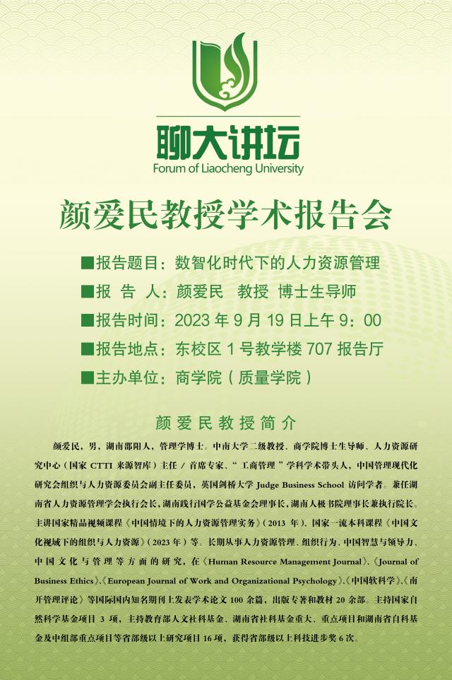 聊大講壇——顏愛民教授學術報告會