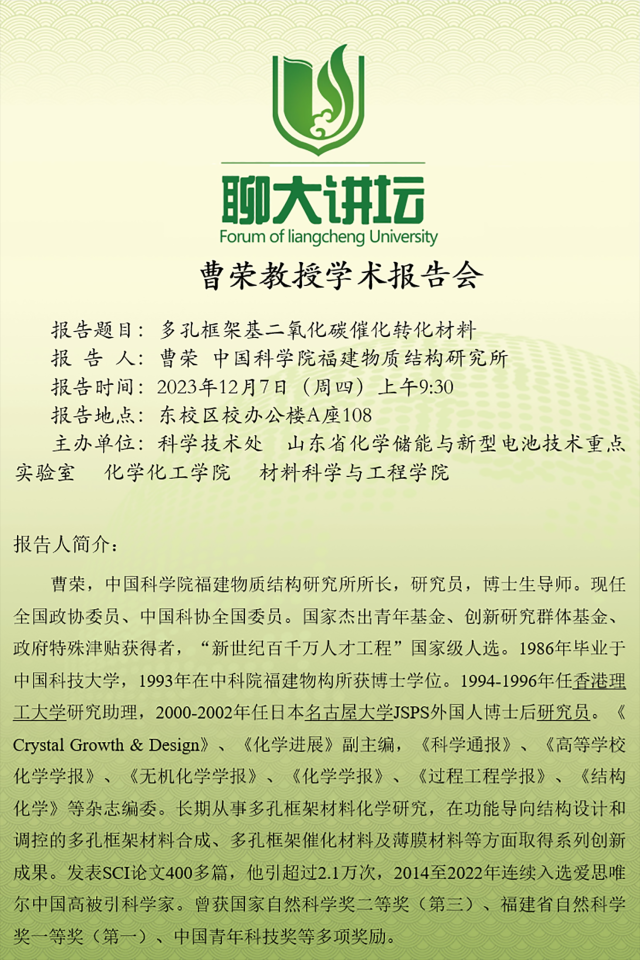 聊大講壇——曹榮教授學術報告會
