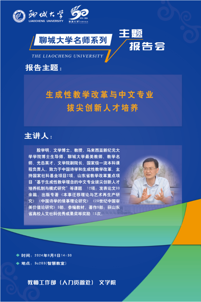 聊城大學(xué)名師系列主題報(bào)告會(huì):生成性教學(xué)改革與中文專業(yè)拔尖創(chuàng)新人才培養(yǎng)