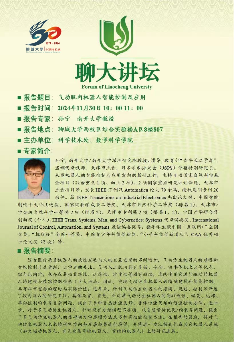 聊大講壇——孫寧教授學(xué)術(shù)報告會