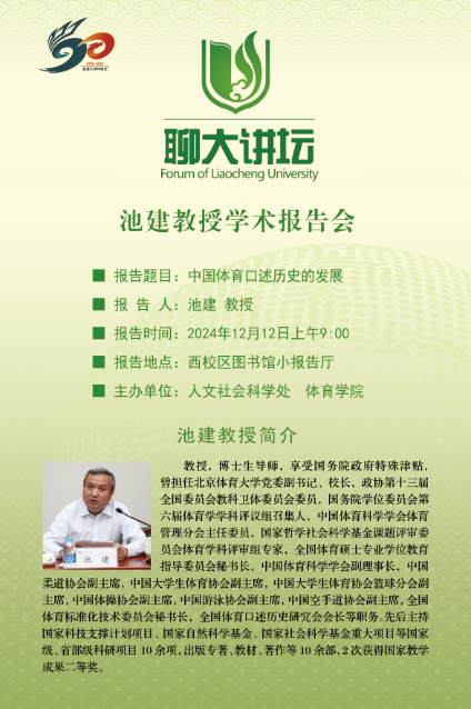 聊大講壇——池建教授學(xué)術(shù)報告會