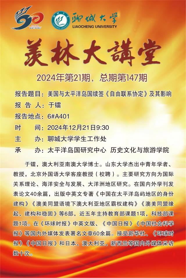 羨林大講堂——美國與太平洋島國續(xù)簽《自由聯(lián)系協(xié)定》及其影響