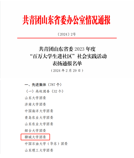聊城大學(xué)獲評山東省2023年度“百萬大學(xué)生進(jìn)社區(qū)”社會實(shí)踐活動先進(jìn)集體