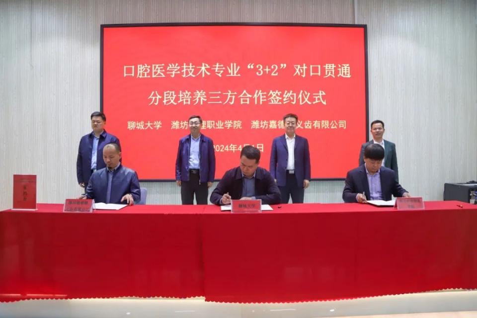 4月1日,關延平一行來到位于濰坊青州的濰坊護理職業學院和濰坊嘉德隆義齒有限公司,在寒亭區區委副書記、區長高斌,濰坊護理職業學院黨委書記崔照忠,濰坊嘉德隆義齒有限公司董事長李恩平等陪同下,深入考察了濰坊護理職業學院護理實訓中心、口腔醫學技術實訓中心及附屬牙科醫院、嘉德隆義齒數字工廠及其口腔博物館;并出席貫通培養、協同育人座談會,舉行“聊城大學、濰坊嘉德隆義齒有限公司、濰坊護理職業學院”三方共建“3+2”口腔醫學技術專業簽約儀式。根據三方簽定的合作意向書,三方將在口腔醫學技術專業“3+2”對口貫通分段培養方面開展深層次合作,持續深化產科教融合,共同培養高層次應用型高等職業教育本科人才。關延平指出,黨的二十大明確要求,要“推進職普融通、產教融合、科教融匯”。本科高校與職業院校聯合開展對口貫通分段培養,引入相關企業參與應用型人才鍛造,是貫徹落實國家和山東省高等教育改革要求的一項重大舉措,也是探索創新人才培養模式的有益嘗試。我們合作各方要搶抓機遇、勇擔使命、主動作為,全過程、全方位融入貫通培養各階段,協同培養既具有厚實的理論基礎和專業知識,又具有較強的技術技能實踐能力的高素質應用型人才,更加有力地服務、支撐區域主導產業需求和新質生產力發展。