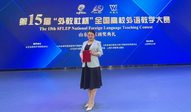 5月10日至12日,第十五屆“外教社杯”全國高校外語教學大賽山東賽區復賽和決賽于在山東師范大學成功舉辦,全省156個隊伍參與獎項角逐,設置一等獎4項、二等獎6項、三等獎10項。外國語學院張媛及其團隊榮獲英語專業組二等獎,顏鑫同及其團隊榮獲大學英語組三等獎。