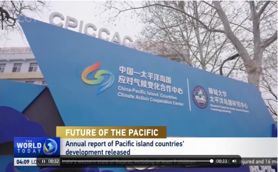 4月20日,CGTN集中報道了聊城大學與中國社會科學出版社聯合舉辦的太平洋島國系列圖書發布會,并介紹了中國—太平洋島國應對氣候變化合作中心成立以來取得的工作進展。5月26日,CGTN詳細報道了聊城大學與社會科學文獻出版社聯合舉辦的《太平洋島國發展報告》(藍皮書)《太平洋島國研究》(集刊)《命運與共的伙伴:太平洋島國》(課程)發布會上展示的一批特色研究成果。