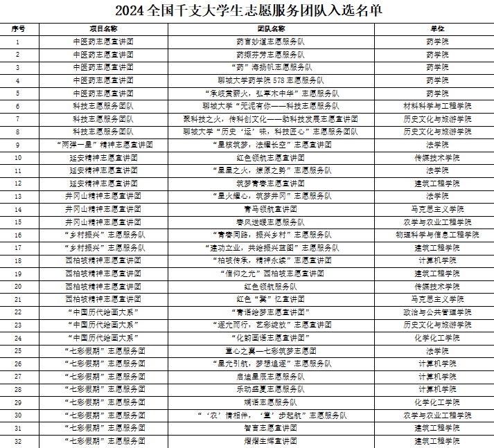 聊城大學32支團隊入選全國千支大學生志愿服務團隊