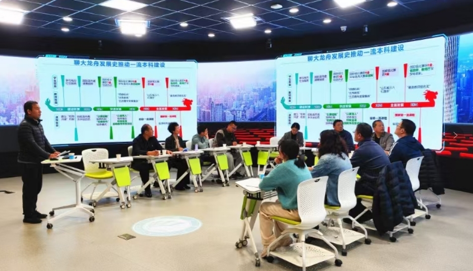 體育學院教授陳翀從聊大龍舟發展史推動一流本科建設、聊大龍舟精神助力傳統文化弘揚、龍舟品牌效應引發社會關注三個方面介紹了聊大龍舟隊相關情況。文學院博士袁輝講到,學院在積極培養高素質人才,創新教學模式,組織豐富文化活動,推動文化傳播的同時,應深化“文以載道、體以育人”內涵,全面加強學科專業建設。體育學院教授張春燕深入講解了中華優秀傳統體育文化的歷史淵源與時代愿景,詳細梳理了龍舟文化發展史,凝練出“家國天下,同舟共濟”的中華龍舟文化精神,為學科專業建設提供有益經驗。文學院教授石小寒結合師生體育發展情況,強調龍舟文化的時代價值,并對學科專業建設提出具體建議,倡導以賽促教、以賽育人。