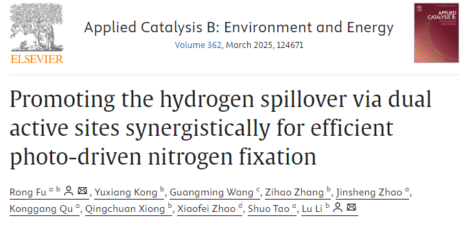 近日,聊城大學化學化工學院付蓉課題組在《應用催化B:環境與能源》( Applied Catalysis B: Environment and Energy )發表了題為 《通過雙活性位點協同促進氫溢出以實現高效的光驅動氮固定”(Promoting the hydrogen spillover via dual active sites synergistically for efficient photo-driven nitrogen fixation )的研究論文,揭示了豐富的Mo(V)物種與負載的Pt雙活性位點協同作用,可以優化光驅動的氮還原和氫氧化。