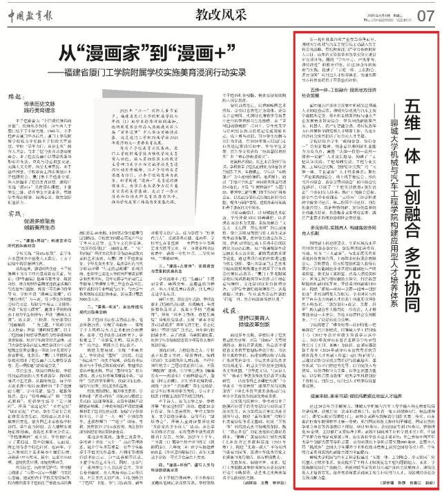 6月3日,《中國(guó)教育報(bào)》以《“五維一體、工創(chuàng)融合、多元協(xié)同”-聊城大學(xué)機(jī)械與汽車工程學(xué)院構(gòu)建應(yīng)用型人才培養(yǎng)體系》為題,報(bào)道我校機(jī)械與汽車工程學(xué)院在構(gòu)建并實(shí)踐培養(yǎng)高素質(zhì)機(jī)械工程專業(yè)應(yīng)用型人才培養(yǎng)新體系方面的經(jīng)驗(yàn)做法。