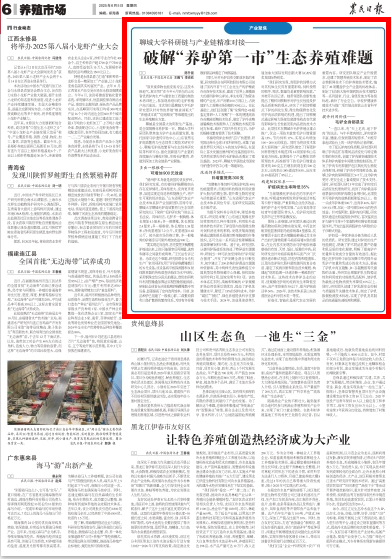 【農(nóng)民日?qǐng)?bào)】報(bào)道:聊城大學(xué)科研鏈與產(chǎn)業(yè)鏈精準(zhǔn)對(duì)接—— 破解“養(yǎng)驢第一市”生態(tài)養(yǎng)殖難題2025-06-05