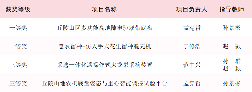 國際大學生智能農業裝備創新大賽是我校重點支持的B類賽事之一,由國際農業和生物系統工程委員會、中國農業機械學會、中國農業工程學會、省部共建現代農業裝備與技術協同創新中心、農業工程大學國際聯盟共同主辦,旨在培育行業亟需的“專業知識雄厚、動手能力較強、創新創業能力過硬”的現代農業裝備創新創業人才,為我國實現由農業裝備大國向農業裝備強國邁進提供人才支撐。據悉,本屆大賽吸引了哈爾濱工業大學、浙江大學、西安交通大學、中國農業大學等全國218所學校的1845個項目團隊參賽,是農業智能裝備工程領域的年度盛會,參賽學生和作品專業性強,技術要求高,競爭激烈,獲獎難度高。