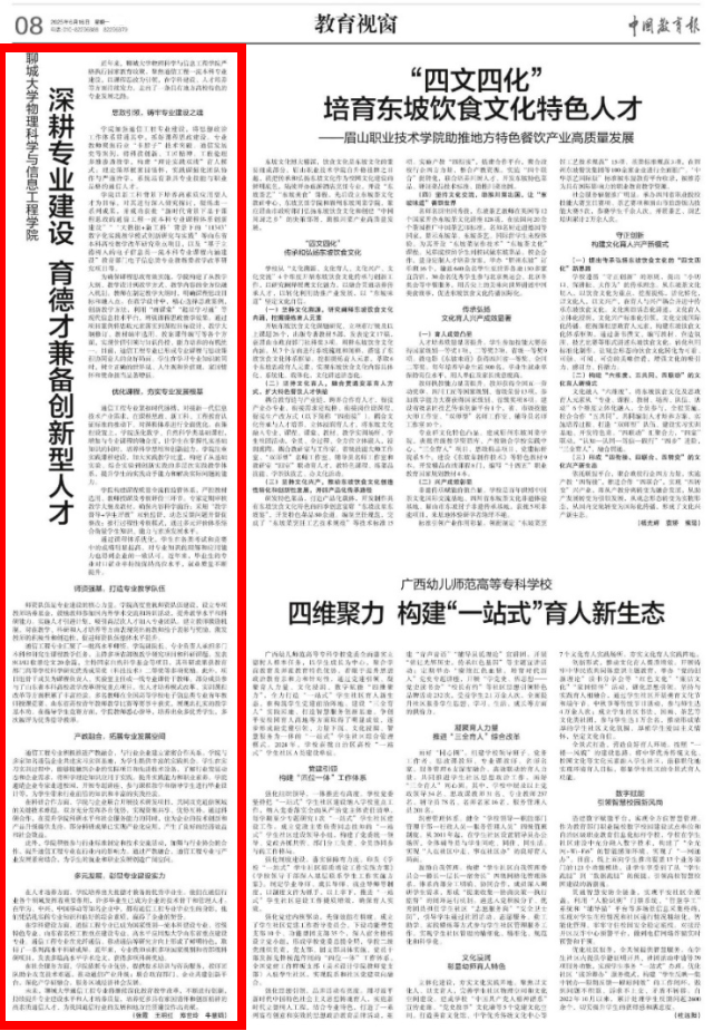 【編者按】6月16日,《中國教育報》第8版“教育視窗”版面,以《聊城大學物理科學與信息工程學院:深耕專業建設 育德才兼備創新型人才》為題,專題報道了我校物理科學與信息工程學院電子信息類專業的特色建設路徑與顯著成效。