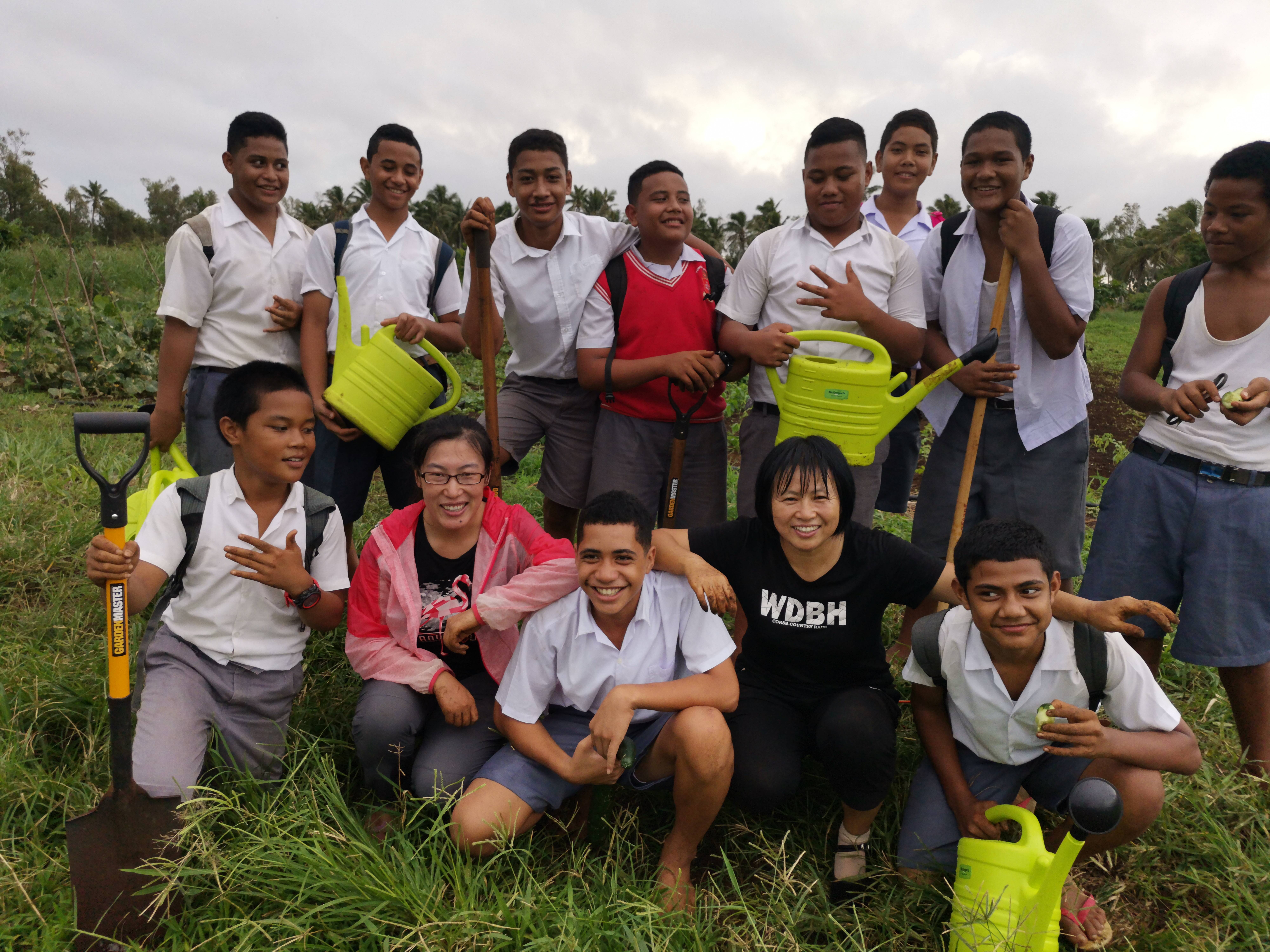 湯加學院是湯加王國兩所公辦中學之一,農場為在校師生提供食材?!叭サ臅r候,當地蔬菜種植基礎基本是一片空白。沒有種子、沒有農藥、沒有農具,連育苗場所都沒有?!边@些,都沒有難倒援助團隊。齊輝和張蕾蕾“白手起家”,手把手教學生播種育苗、定植施肥等栽培技術,同時積極分享烹飪技巧。