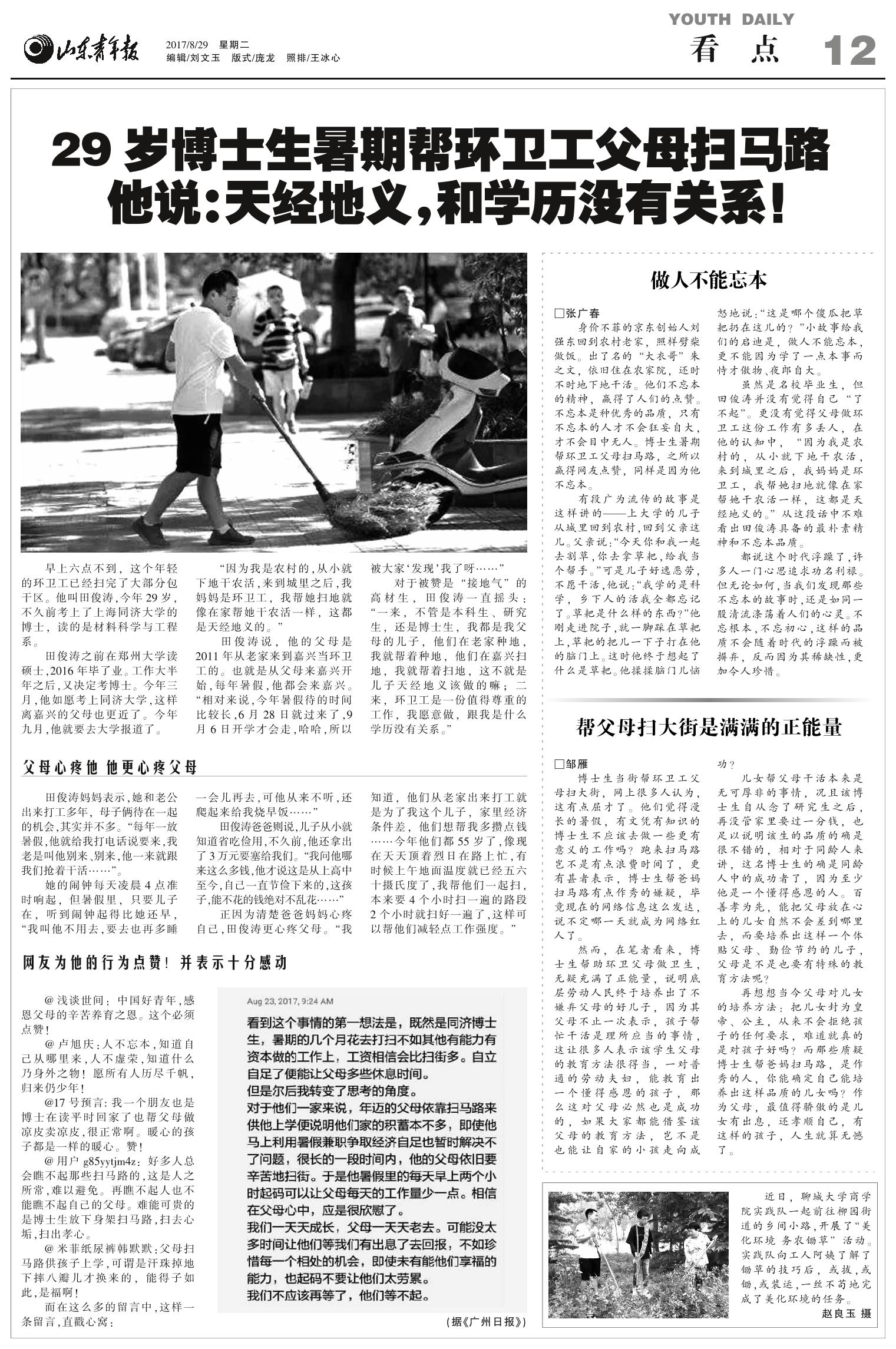 【山東青年報】報道聊城大學商學院舉辦“美化環境 務農鋤草”活動