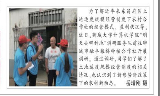 【山東青年報】報道計算機學(xué)院開展“明天去哪種地”調(diào)研之旅 發(fā)
