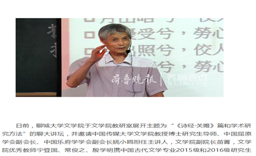 【齊魯晚報】報道文學院“《詩經·關雎》篇和學術研究方法”講壇