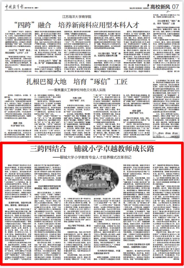 【中國教育報】三跨四結合 鋪就小學卓越教師成長路——聊城大學小學教育專業人才培養模式改革側記