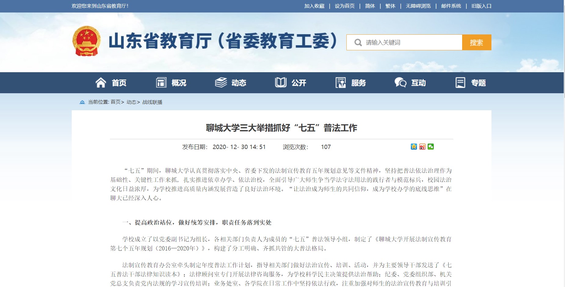 【山東教育廳】聊城大學三大舉措抓好“七五”普法工作