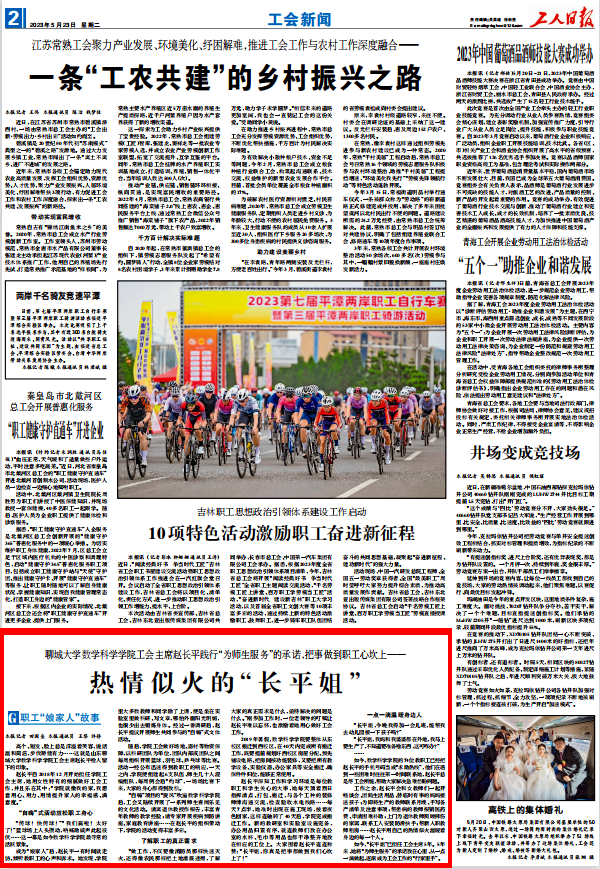 【編者按】5月23日,工人日報以《聊城大學數學科學學院工會主席趙長平踐行“為師生服務”的承諾,把事做到職工心坎上——熱情似火的“長平姐”》為題報道了我校數學科學學院工會主席趙長平為職工熱情服務、做好工會工作的事跡,展現出我校工會工作的風采。