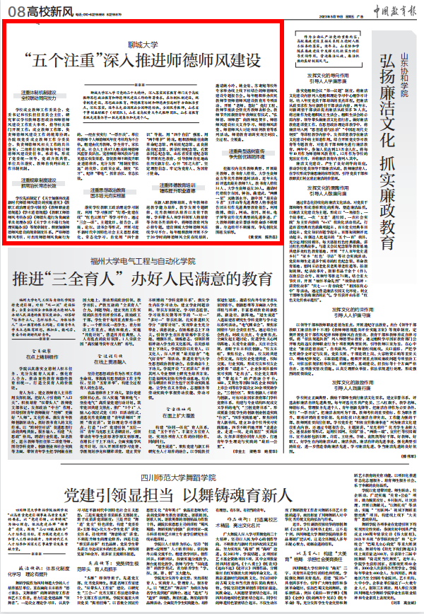 【中國教育報】報道聊城大學 “五個注重”深入推進師德師風建設