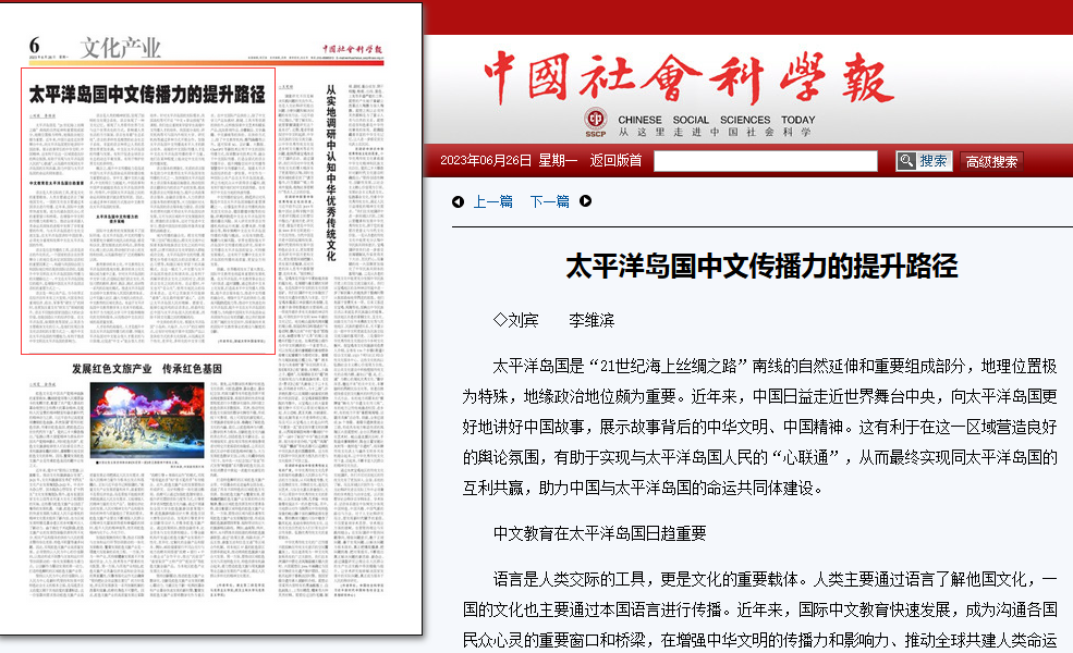 【中國社會科學(xué)報(bào)】發(fā)布聊城大學(xué)太平洋島國中文教育研究成果