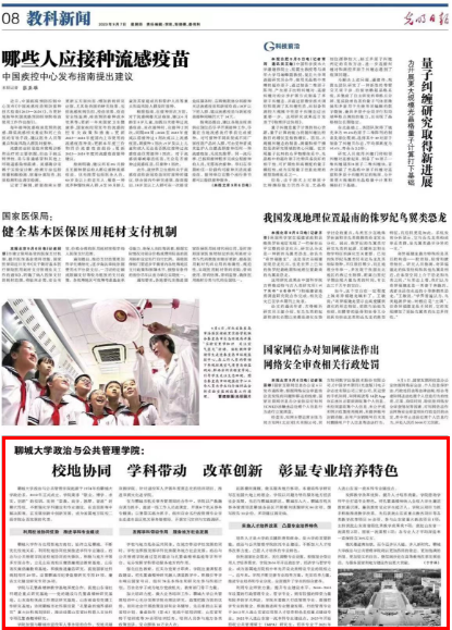 【編者按】9月7日,《光明日報》第8版以《聊城大學政治與公共管理學院:校地協同 學科帶動 改革創新 彰顯專業培養特色》為題,報道了學院強化學科建設和專業建設、不斷創新發展的先進做法。