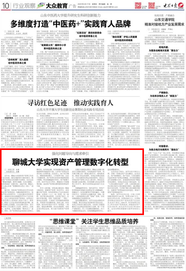 【大眾日報】報道聊城大學實現(xiàn)資產管理數(shù)字化轉型