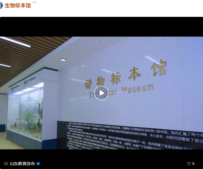【編者按】11月29日,【山東教育發布】發布打開高校里的寶藏圖書館之聊城大學運河學文化展覽館和生物標本館,展現我校建設特色博物館,努力打造校園“第二課堂”。