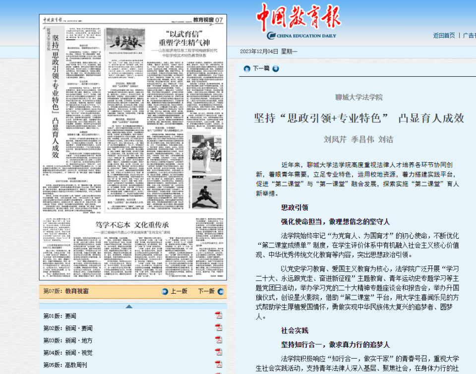 【中國教育報】報道聊城大學法學院:堅持“思政引領+專業特色”凸顯育人成效