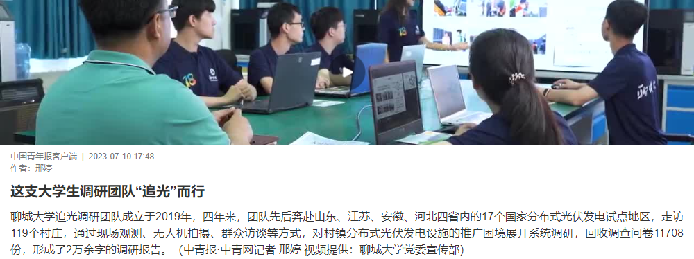 【中國青年報客戶端】報道聊城大學追光調研團隊