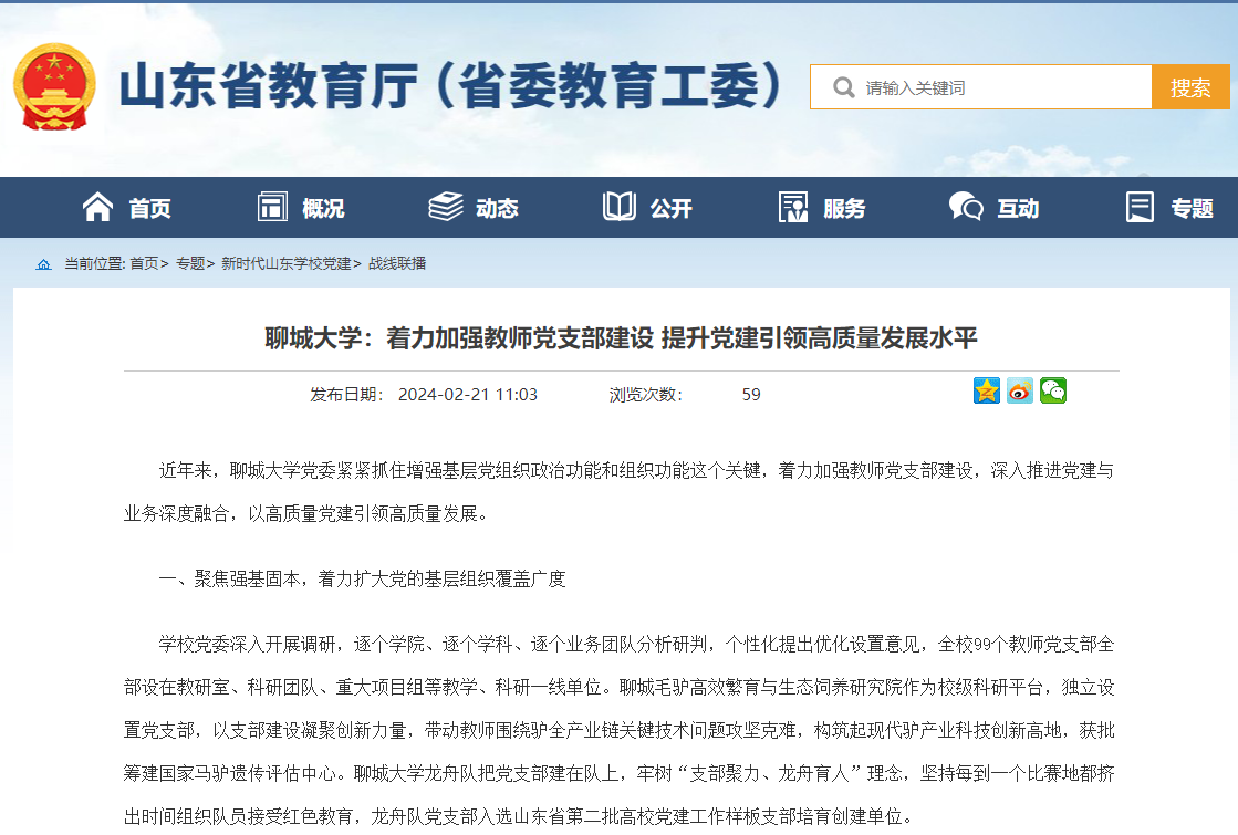 【山東省教育廳】報道聊城大學:著力加強教師黨支部建設 提升黨建引領高質量發展水平