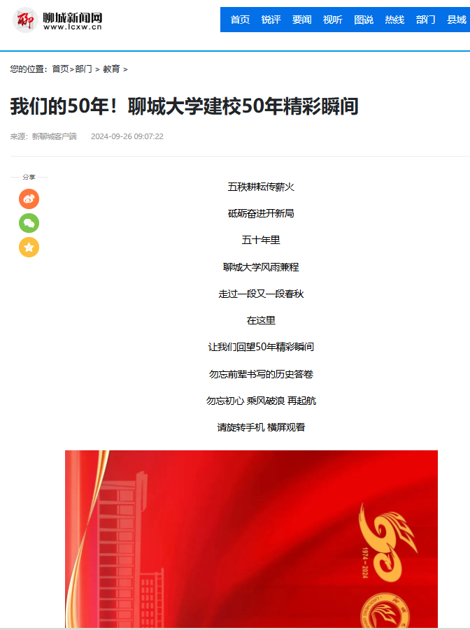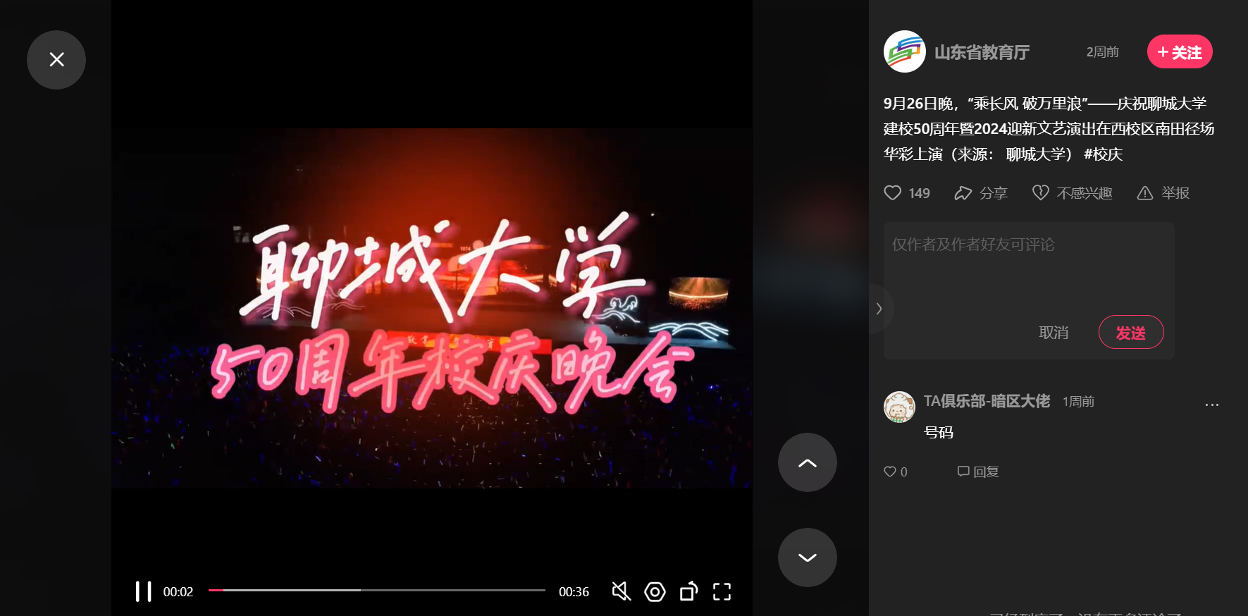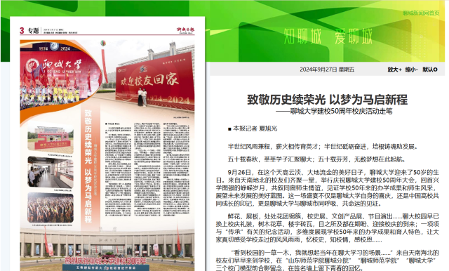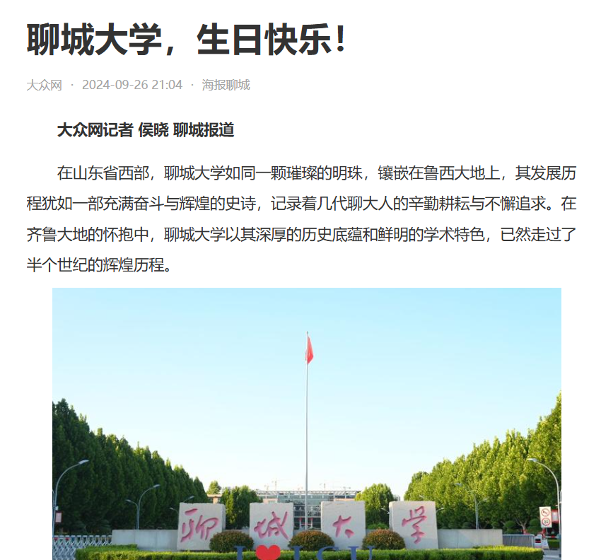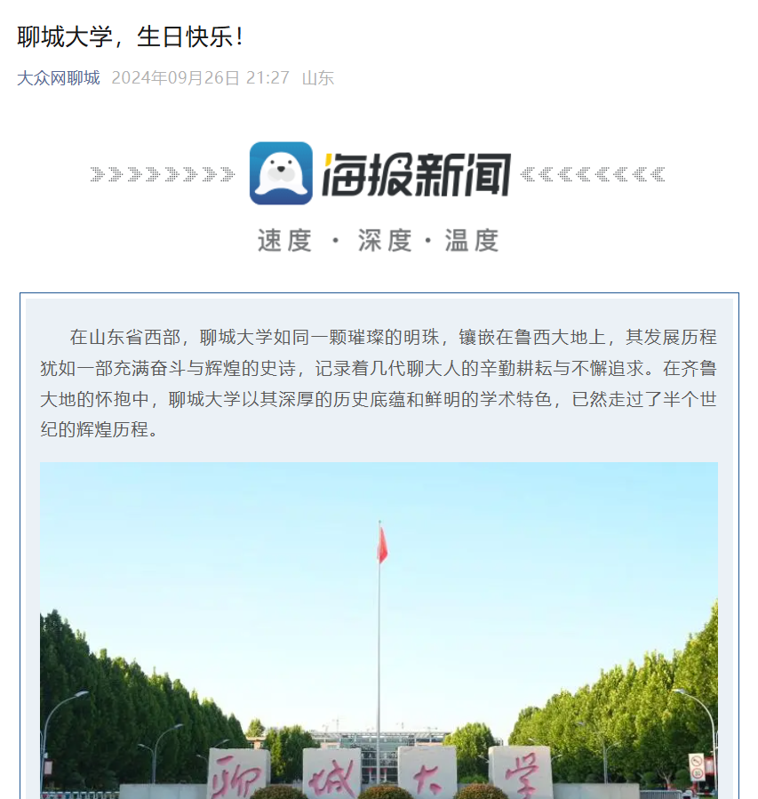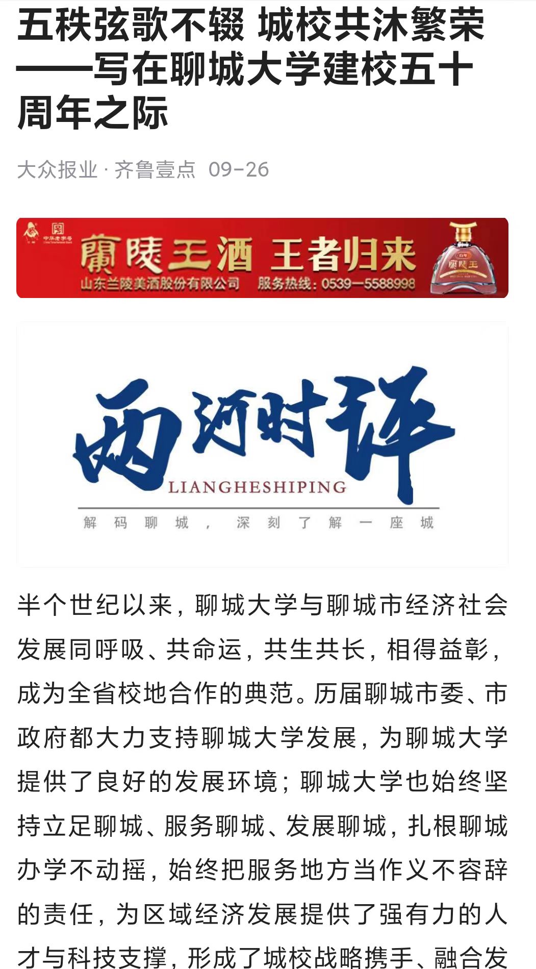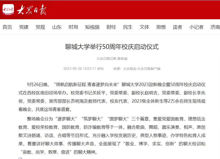 【編者按】校慶期間,我校在中國教育報客戶端、光明日報客戶端、鳳凰網山東、大眾日報、大眾日報客戶端、大眾網、閃電新聞客戶端、聊城日報、海報新聞、齊魯壹點、中國山東網等15家媒體共發布校慶主題新聞報道23篇。在山東衛視“早安山東”、山東教育廳官方微信賬號(山東教育發布微信視頻號、抖音號、快手號)、閃電新聞客戶端、大眾網、齊魯壹點、中國教育在線、鳳凰新聞客戶端、直播聊城等媒體發布短視頻41個,微信圖文3篇。在聊城大學微信公眾號、視頻號、抖音號、微博號等媒體平臺發布圖文、視頻共計51篇,總瀏覽量70.6萬。校慶大會和晚會有十幾個校內外新媒體賬號向全網直播,聊城大學五十年發展歷程得到了真實、直觀、動人的高效率高質量傳播,營造了校慶宣傳的熱烈氛圍,在全網形成了慶祝聊大校慶的良好輿論氛圍。