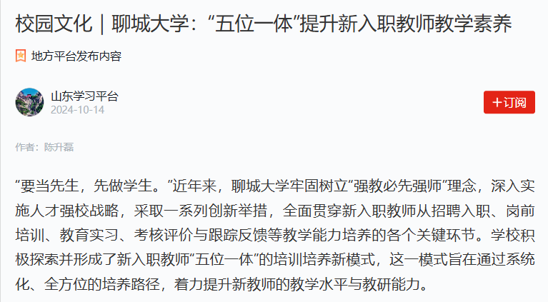 【學習強國(山東學習平臺)】發布聊城大學:“五位一體”提升新入職教師教學素養