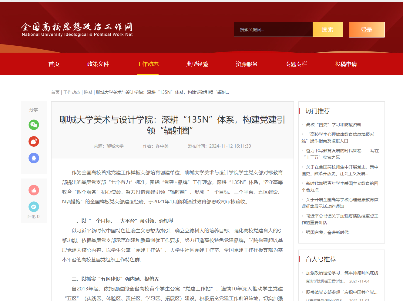 【全國高校思想政治工作網】報道聊城大學美術與設計學院:深耕“135N”體系,構建黨建引領“輻射圈”