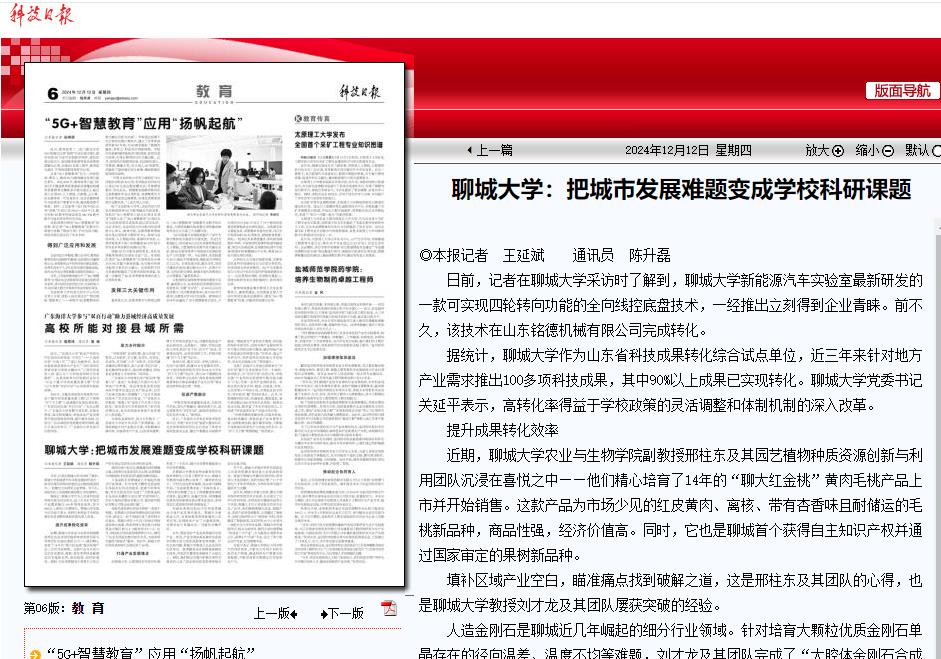【編者按】12月12日,央媒科技日報以《聊城大學:把城市發展難題變成學校科研課題》為題,報道我校不斷優化有利于科研創新的生產環境,推進科研生產要素創新性配置,培育符合聊城定位的新質生產力的工作做法。