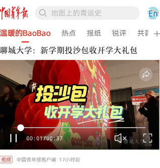 【中國青年報(bào)客戶端】報(bào)道聊城大學(xué):新學(xué)期投沙包收開學(xué)禮包