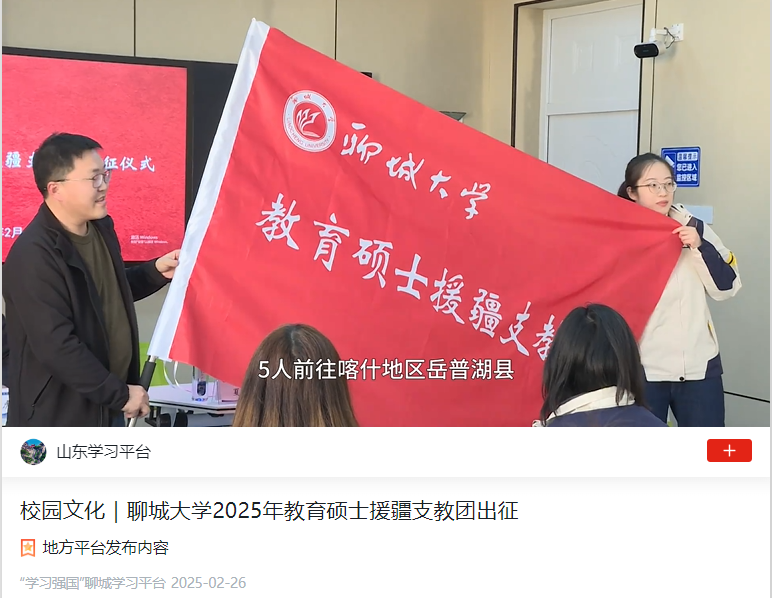 【學習強國】報道聊城大學2025年教育碩士援疆支教團出征