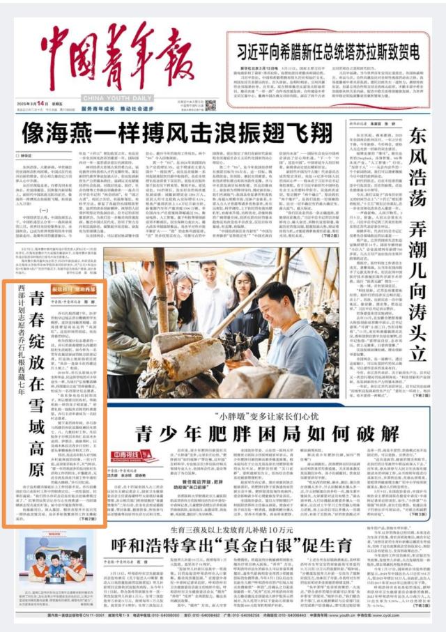 【中國青年報】報道聊城大學西部計劃志愿者喬石扎根西藏七年事跡